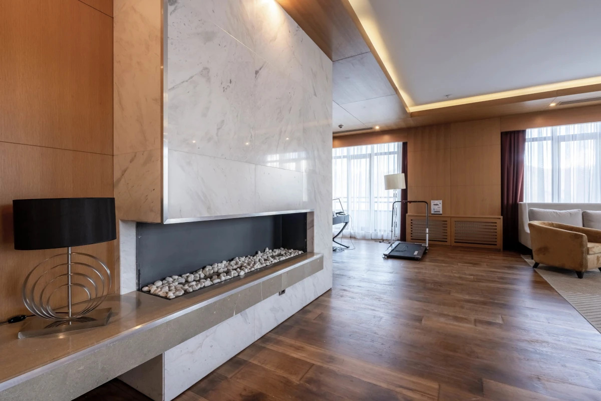 Оборудование: кондиционер, кофемашина, сейф, телевизор ЖК (c опциями интерактивного телевидения), телефон, индукционная плита, холодильник, вытяжка.
